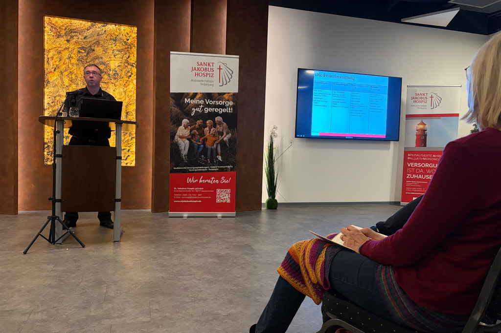 Die Veranstaltung, organisiert von der St. Jakobus Hospiz gGmbH Saarbrücken in Kooperation mit Pietät von Rüden, war sehr gut besucht. Zahlreiche Interessierte folgten der Einladung, sich behutsam und zugleich informativ mit Fragen rund um Bestattungsvorsorge, Abschiedskultur und persönliche Wünsche auseinanderzusetzen.